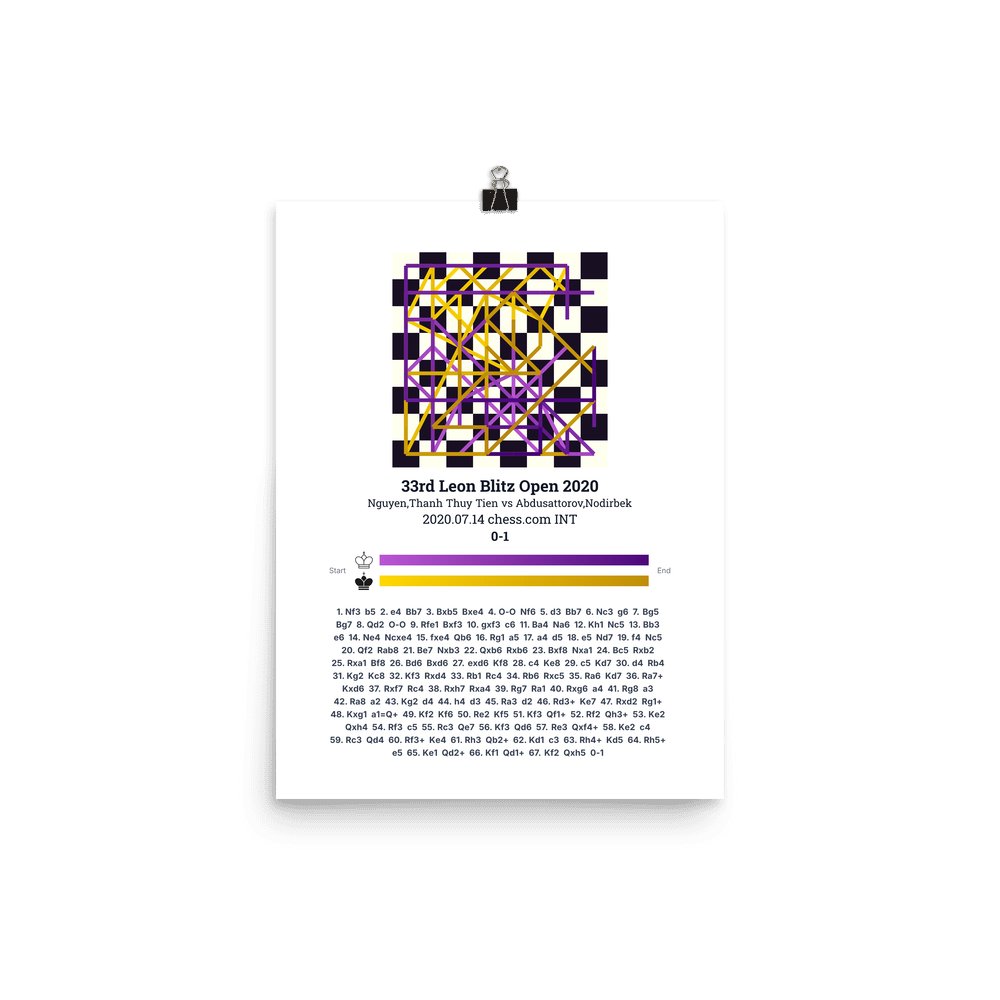 Museum-quality poster on thick, durable matte paper. A sharp, clean look for any chess visualisation.