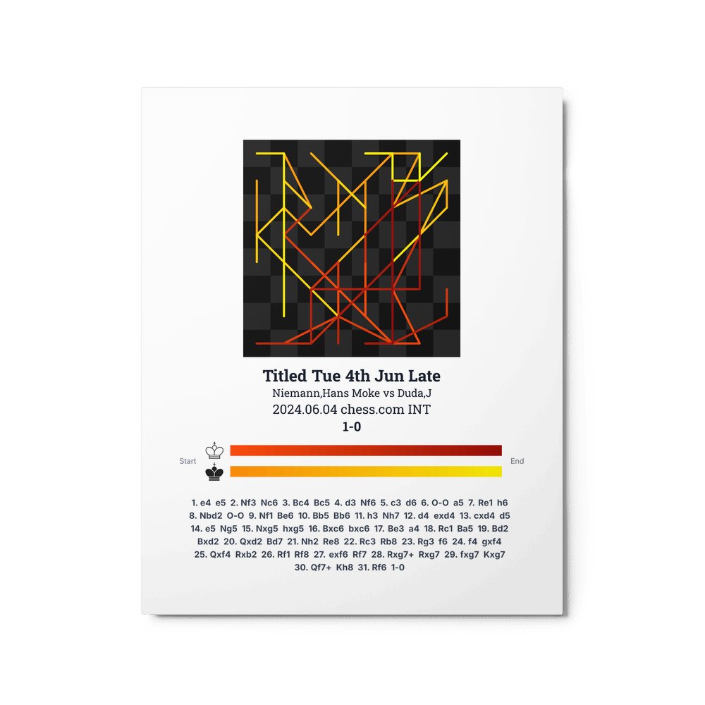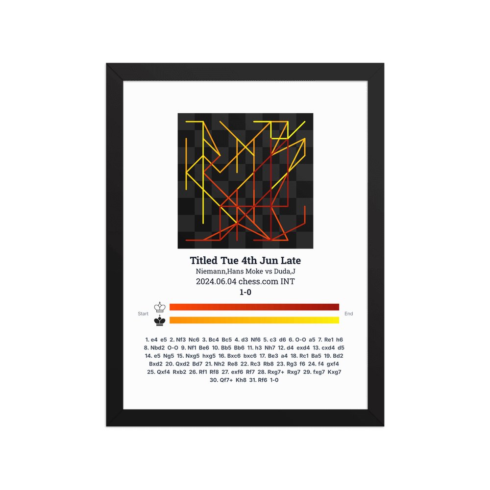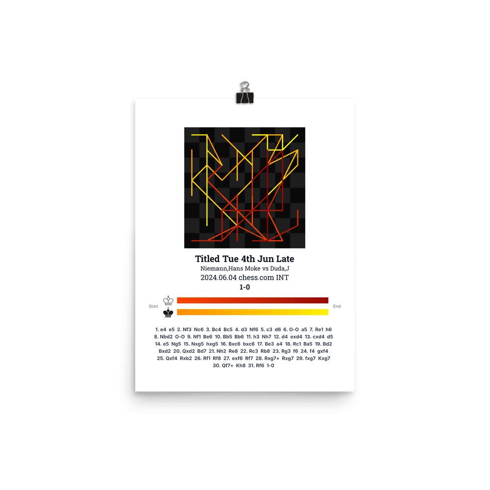Museum-quality poster on thick, durable matte paper. A sharp, clean look for any chess visualisation.