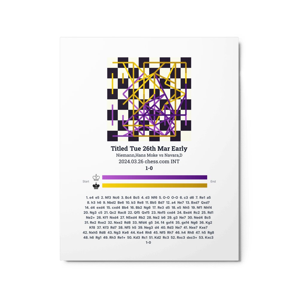 Museum-quality poster on thick, durable matte paper. A sharp, clean look for any chess visualisation.