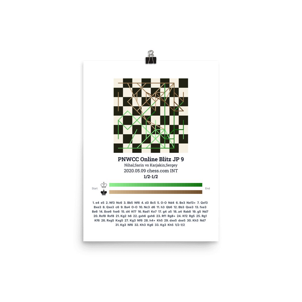 Museum-quality poster on thick, durable matte paper. A sharp, clean look for any chess visualisation.