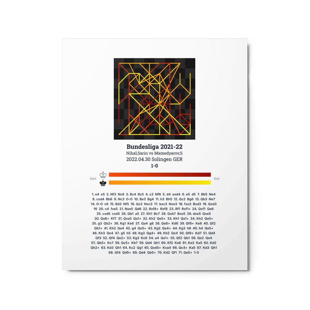 Museum-quality poster on thick, durable matte paper. A sharp, clean look for any chess visualisation.