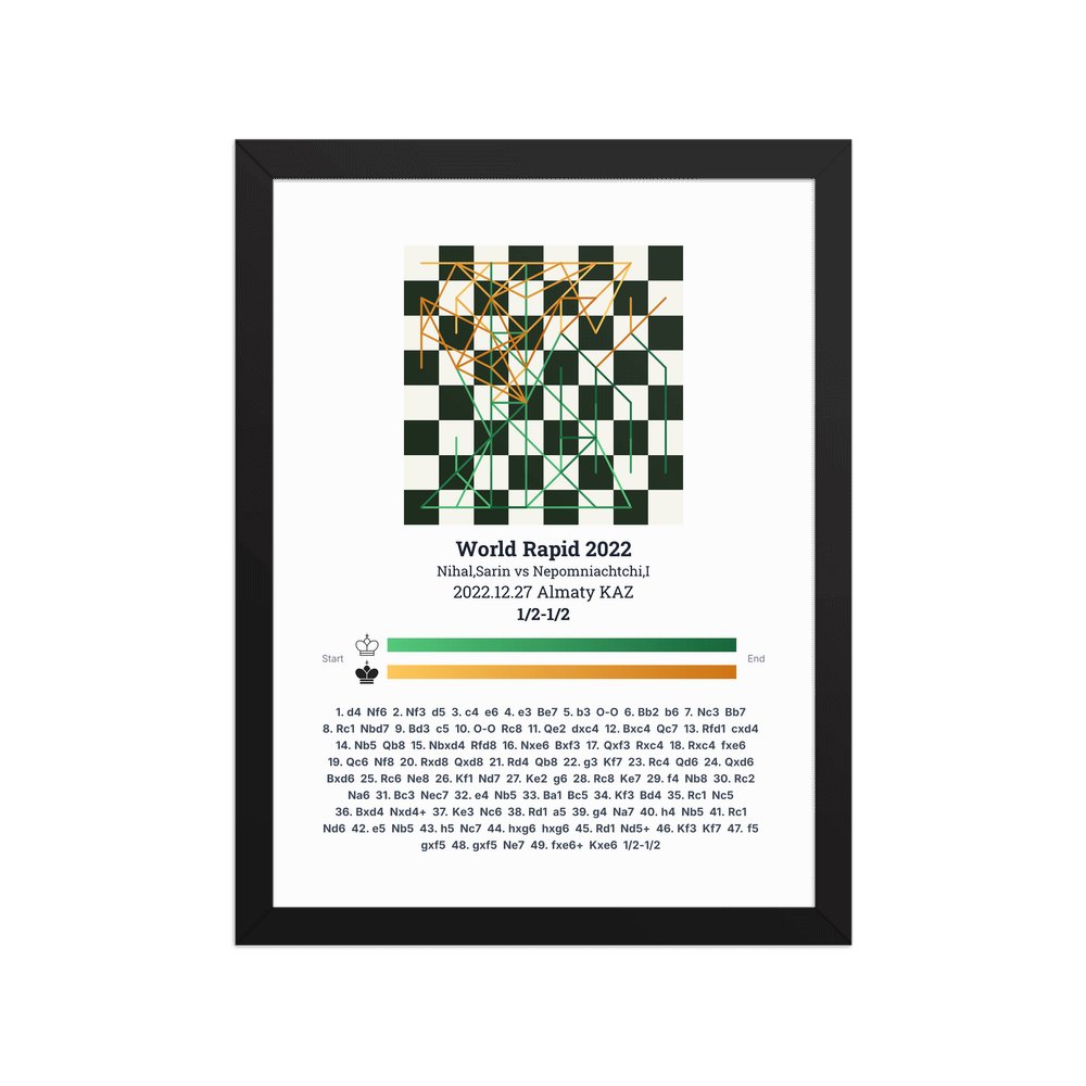 Museum-quality poster on thick, durable matte paper. A sharp, clean look for any chess visualisation.