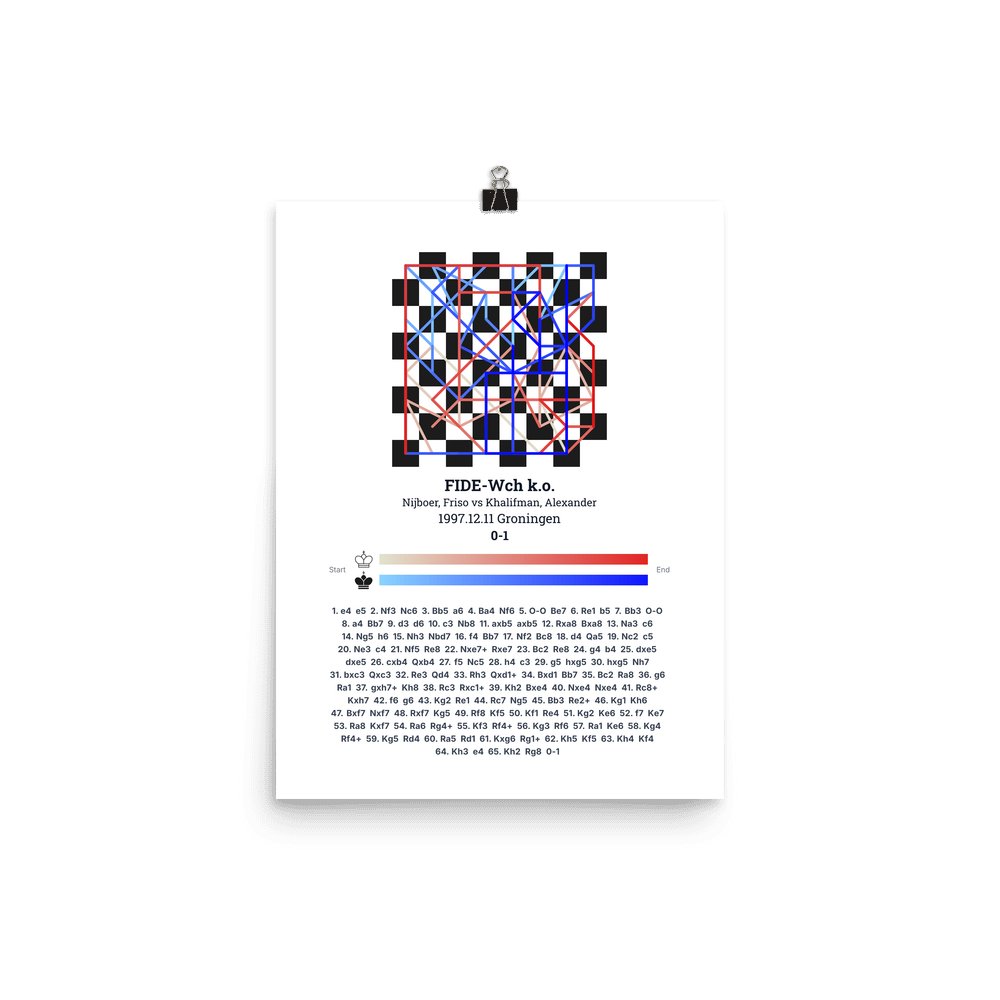 Museum-quality poster on thick, durable matte paper. A sharp, clean look for any chess visualisation.