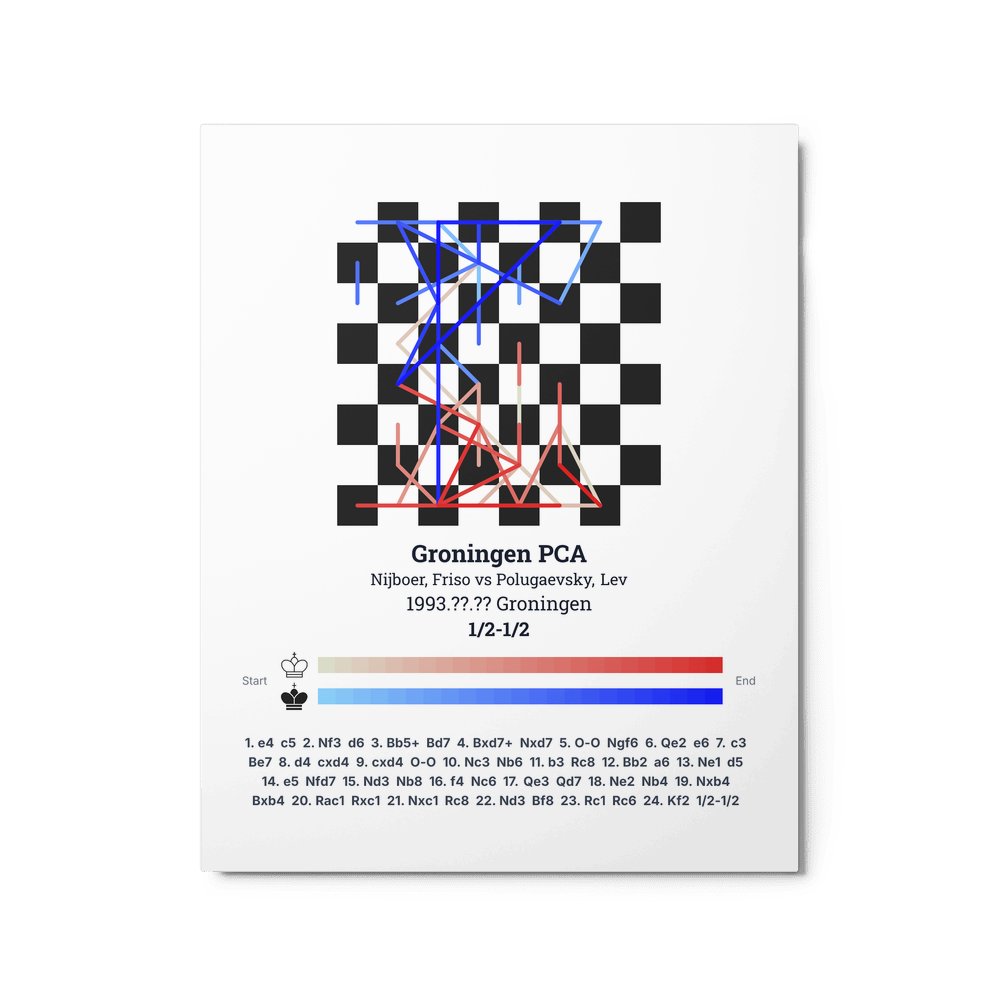 Museum-quality poster on thick, durable matte paper. A sharp, clean look for any chess visualisation.