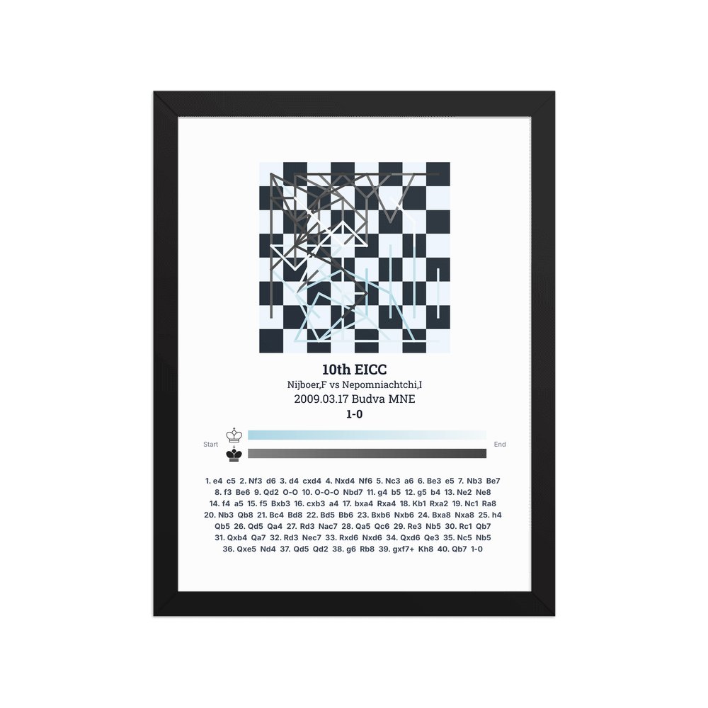 Museum-quality poster on thick, durable matte paper. A sharp, clean look for any chess visualisation.