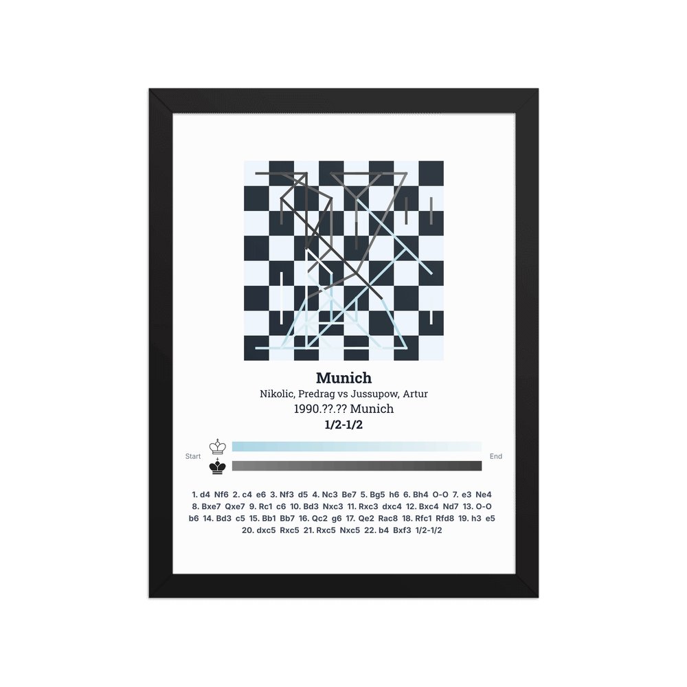 Museum-quality poster on thick, durable matte paper. A sharp, clean look for any chess visualisation.