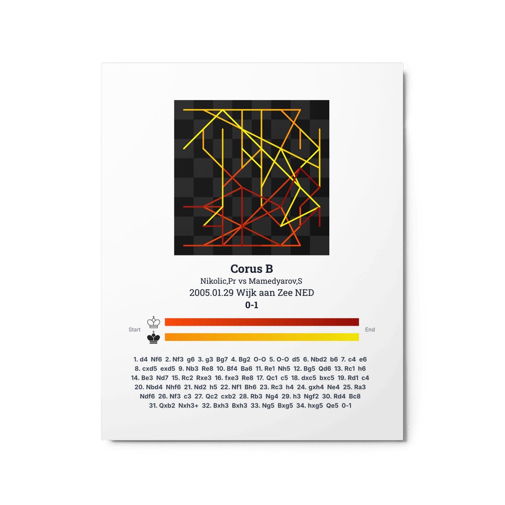Museum-quality poster on thick, durable matte paper. A sharp, clean look for any chess visualisation.