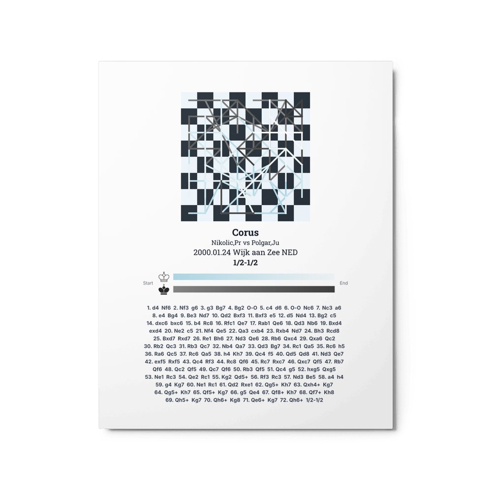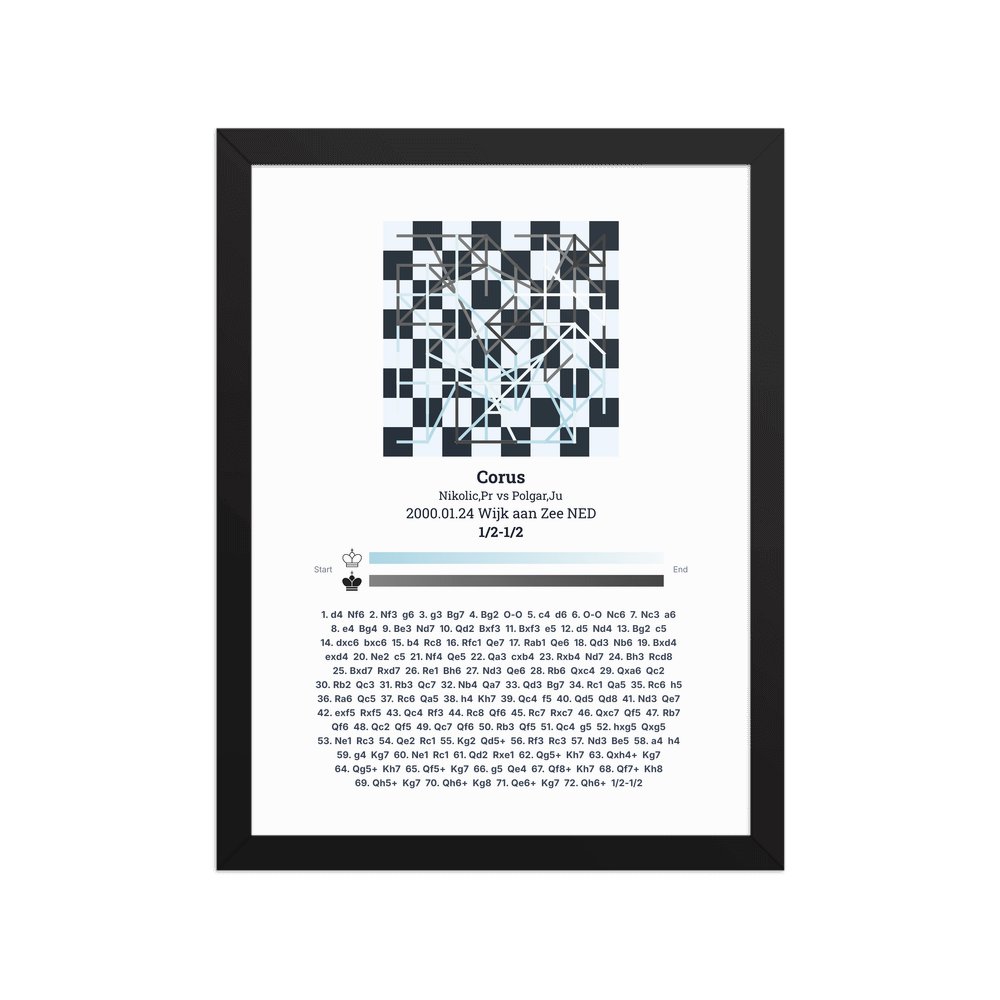 Museum-quality poster on thick, durable matte paper. A sharp, clean look for any chess visualisation.