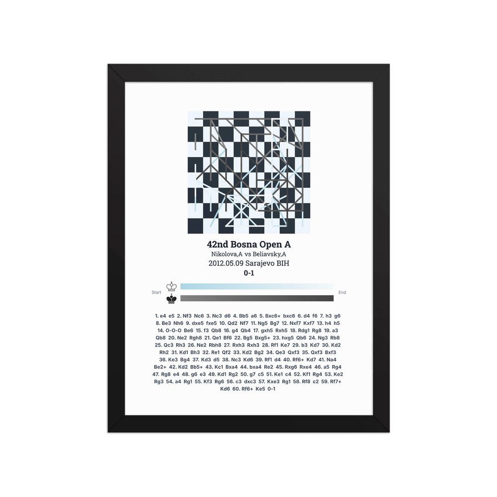 Museum-quality poster on thick, durable matte paper. A sharp, clean look for any chess visualisation.