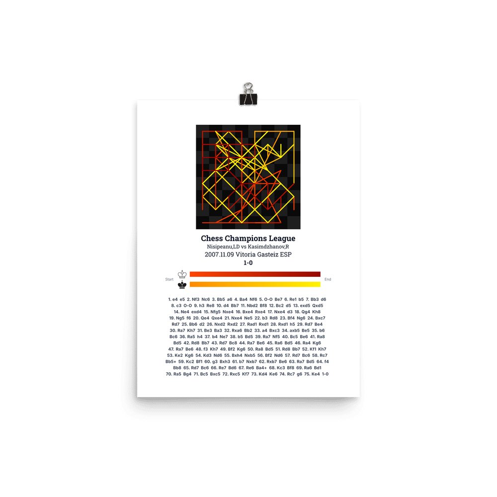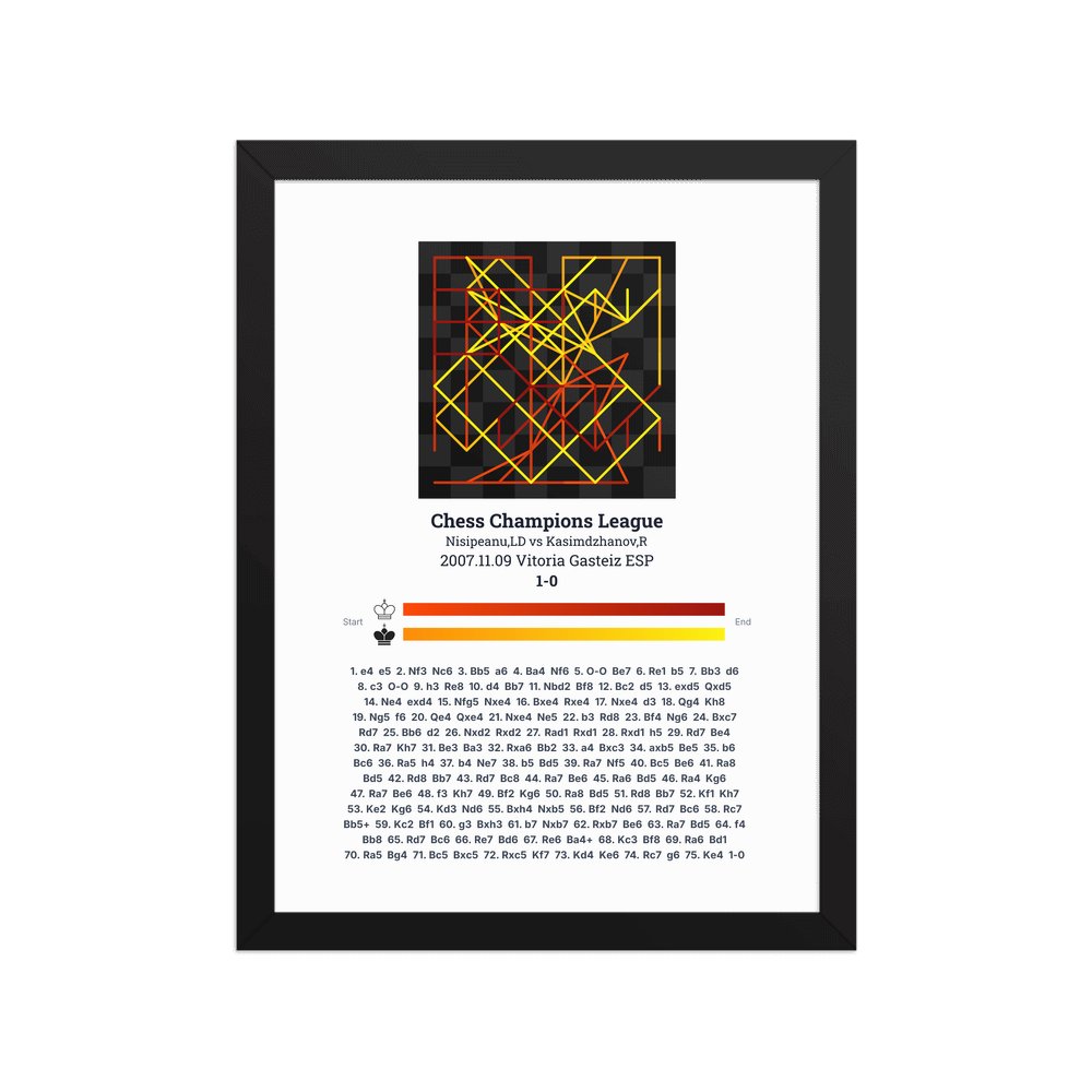 Museum-quality poster on thick, durable matte paper. A sharp, clean look for any chess visualisation.