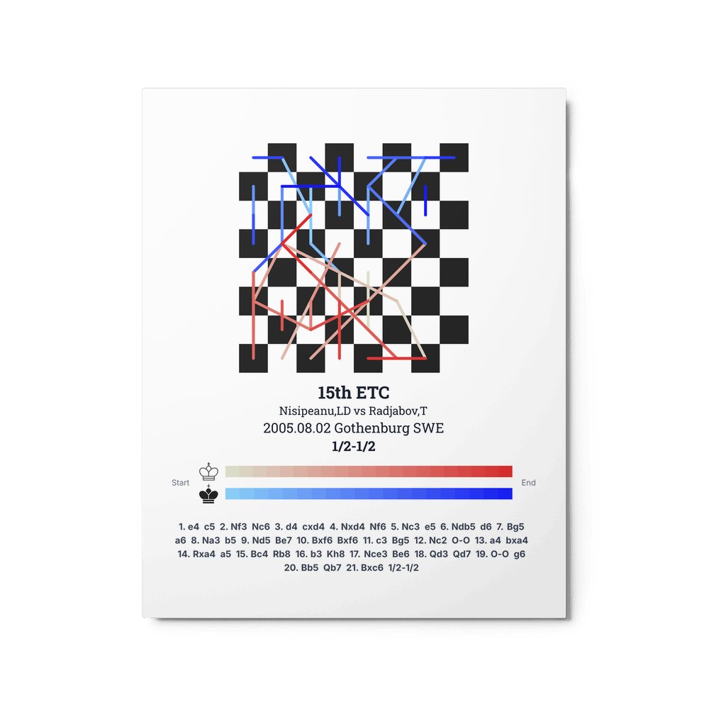 Museum-quality poster on thick, durable matte paper. A sharp, clean look for any chess visualisation.