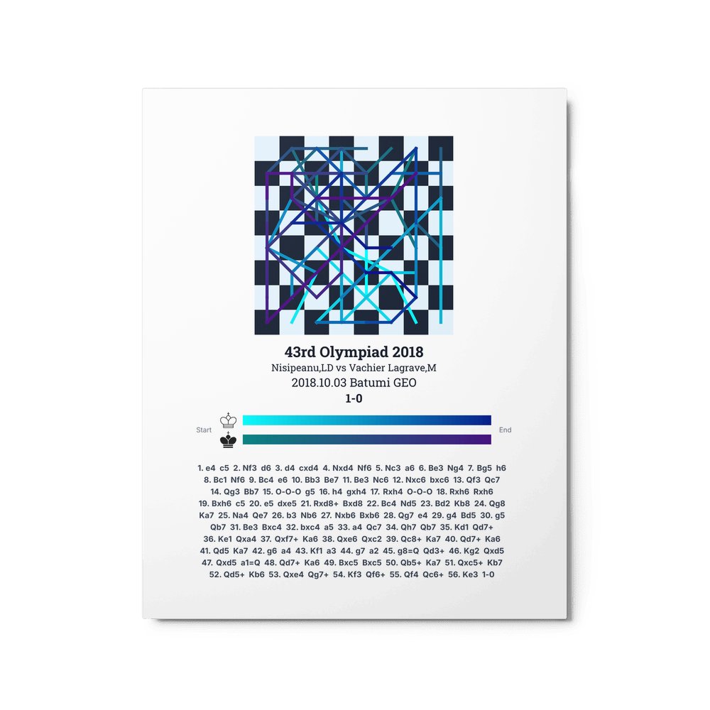 Museum-quality poster on thick, durable matte paper. A sharp, clean look for any chess visualisation.