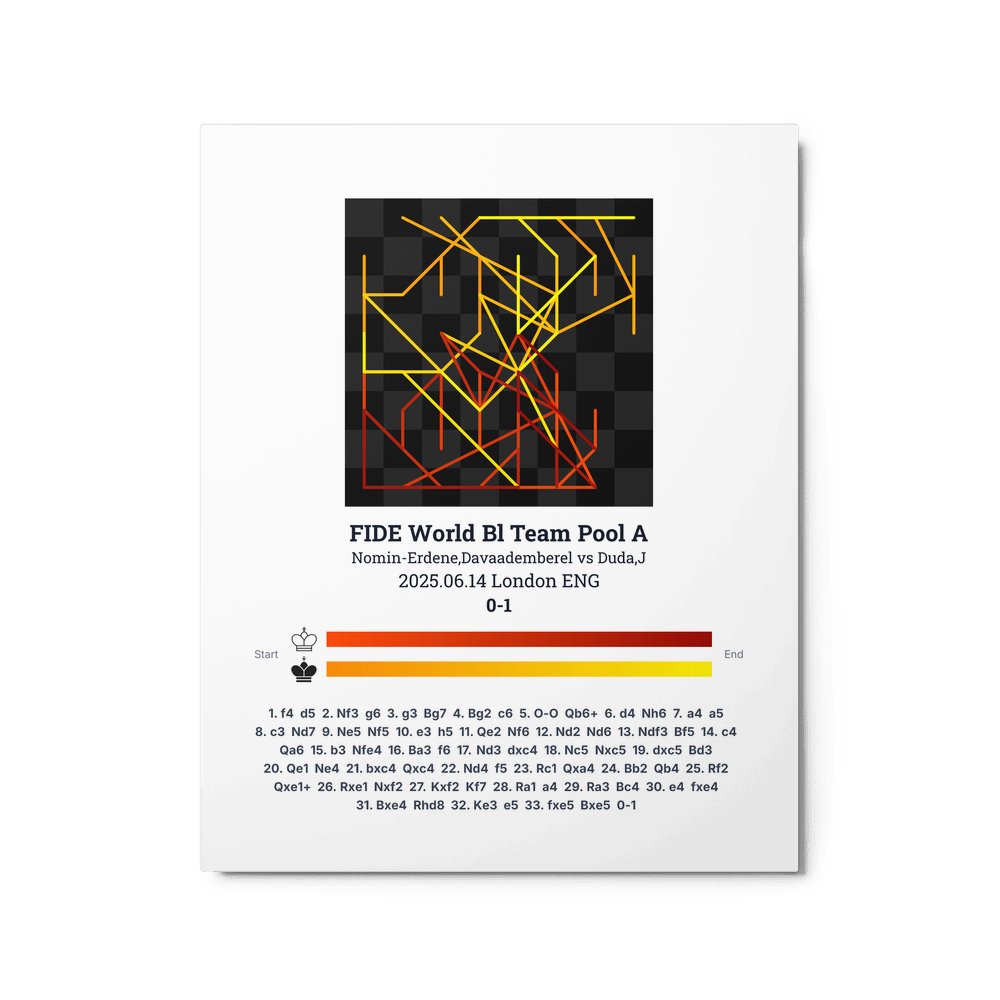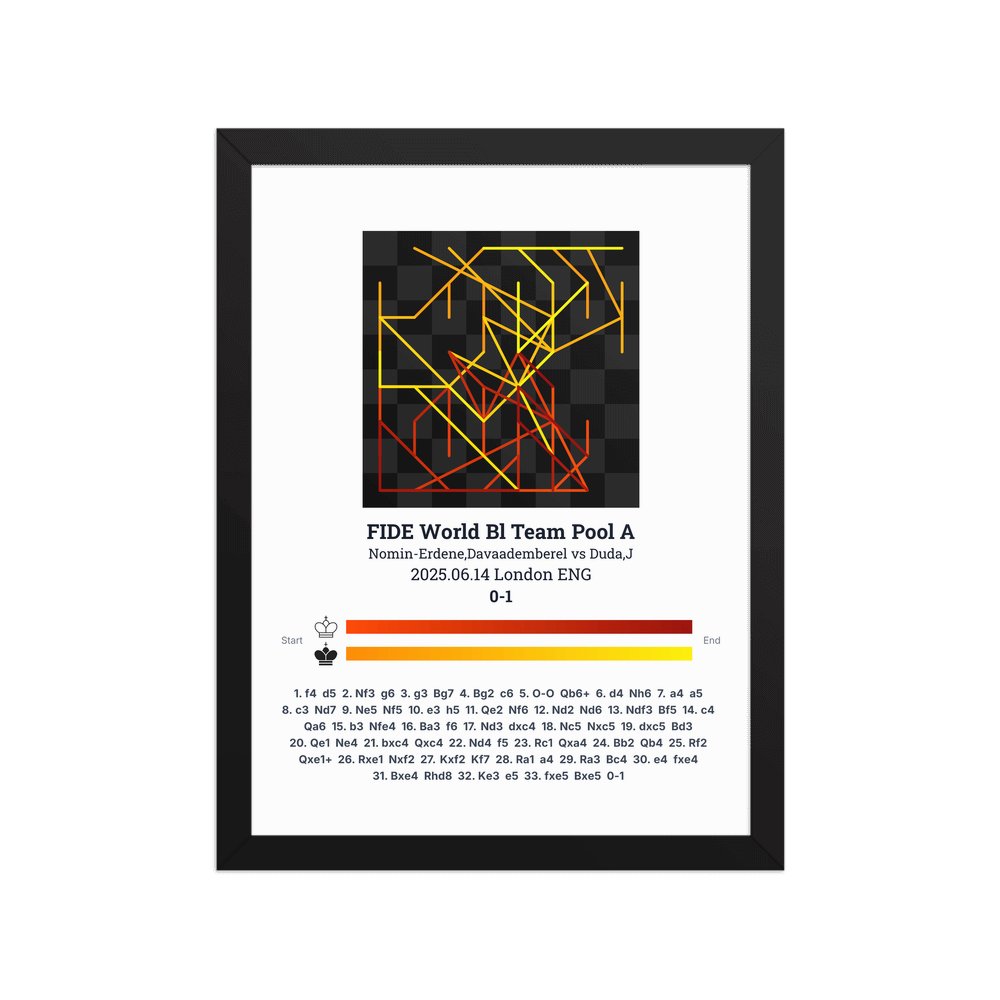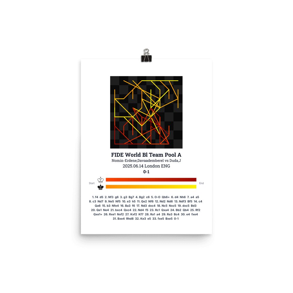 Museum-quality poster on thick, durable matte paper. A sharp, clean look for any chess visualisation.