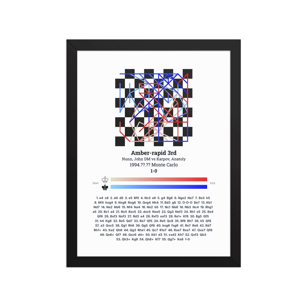 Museum-quality poster on thick, durable matte paper. A sharp, clean look for any chess visualisation.