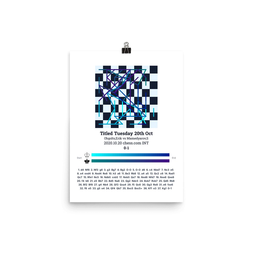 Museum-quality poster on thick, durable matte paper. A sharp, clean look for any chess visualisation.
