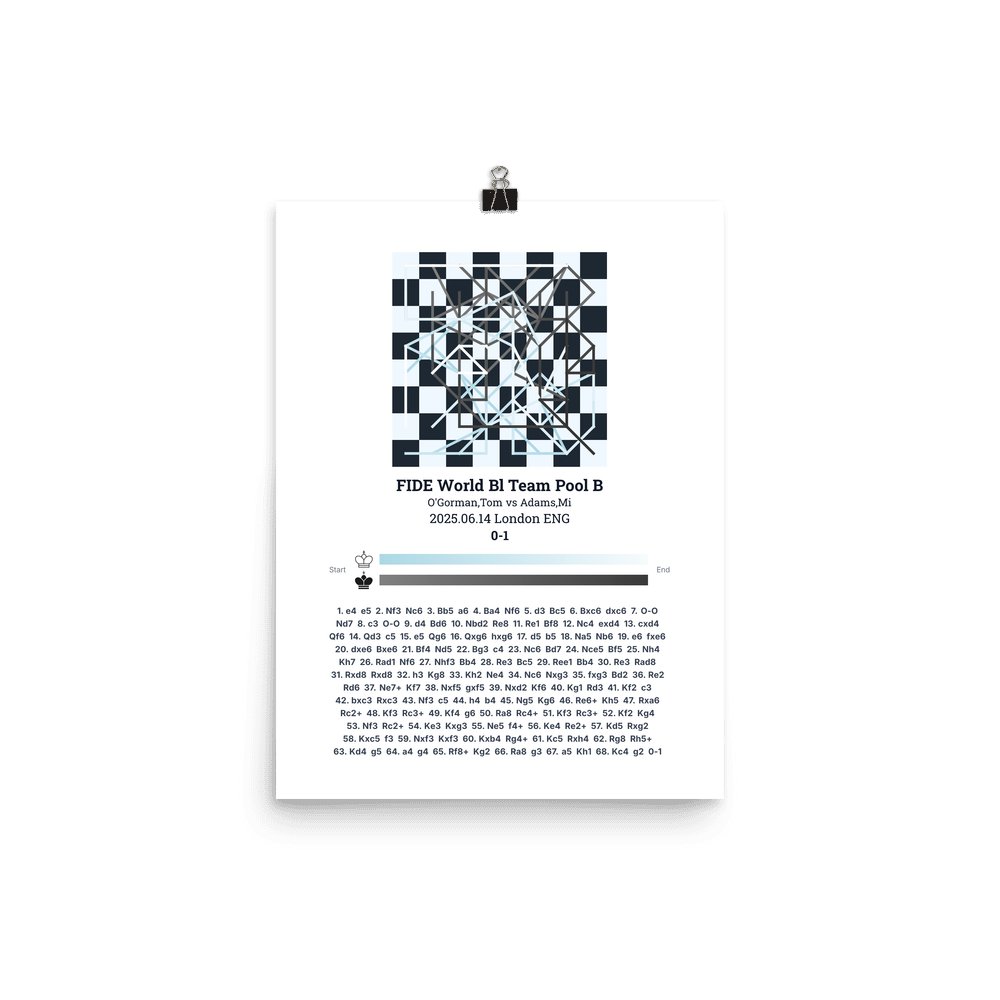 Museum-quality poster on thick, durable matte paper. A sharp, clean look for any chess visualisation.