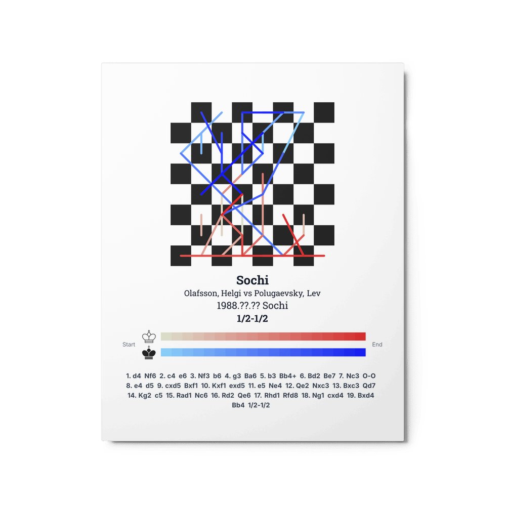 Museum-quality poster on thick, durable matte paper. A sharp, clean look for any chess visualisation.