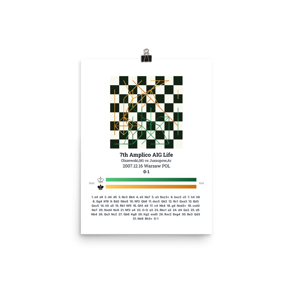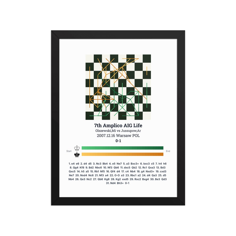 Museum-quality poster on thick, durable matte paper. A sharp, clean look for any chess visualisation.
