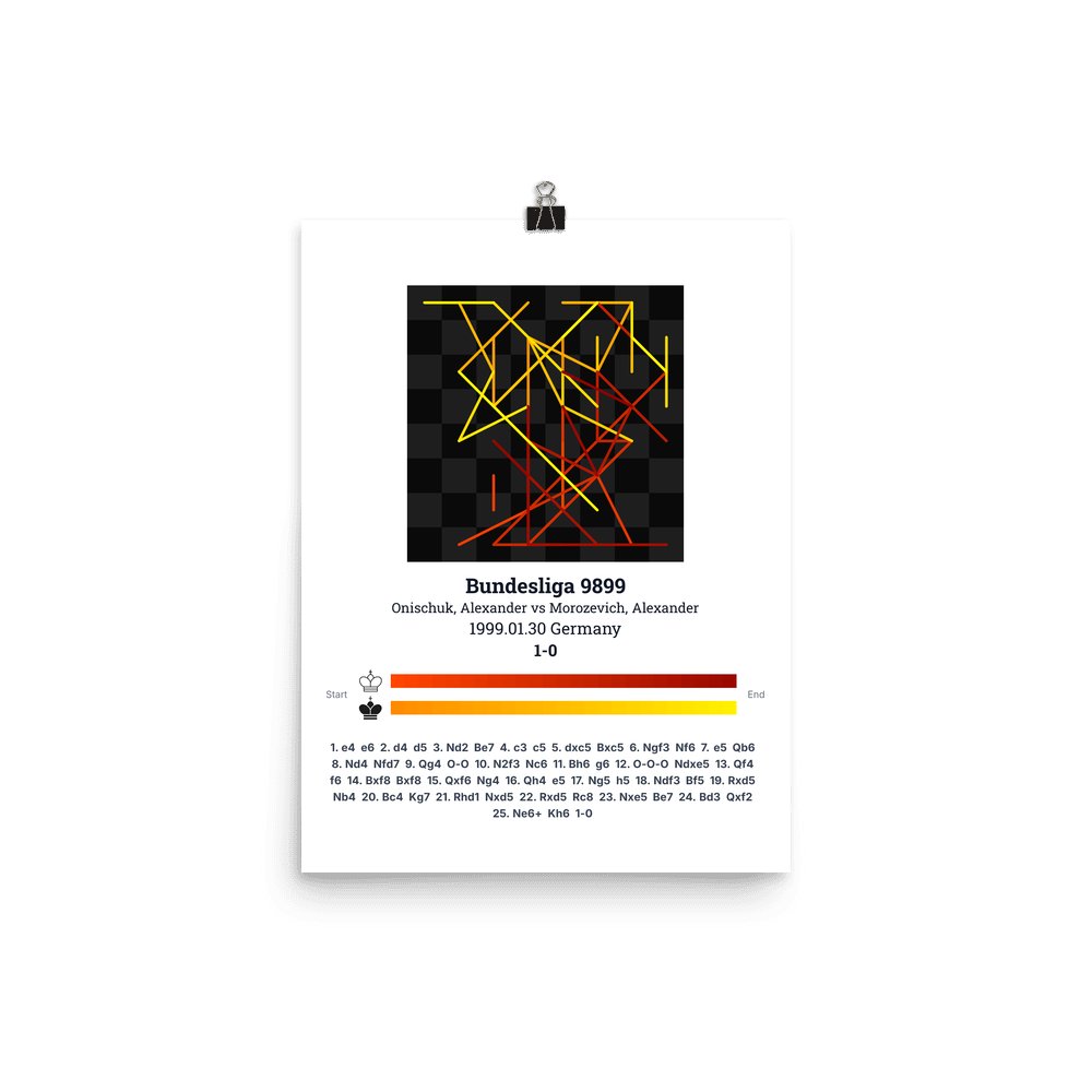 Museum-quality poster on thick, durable matte paper. A sharp, clean look for any chess visualisation.