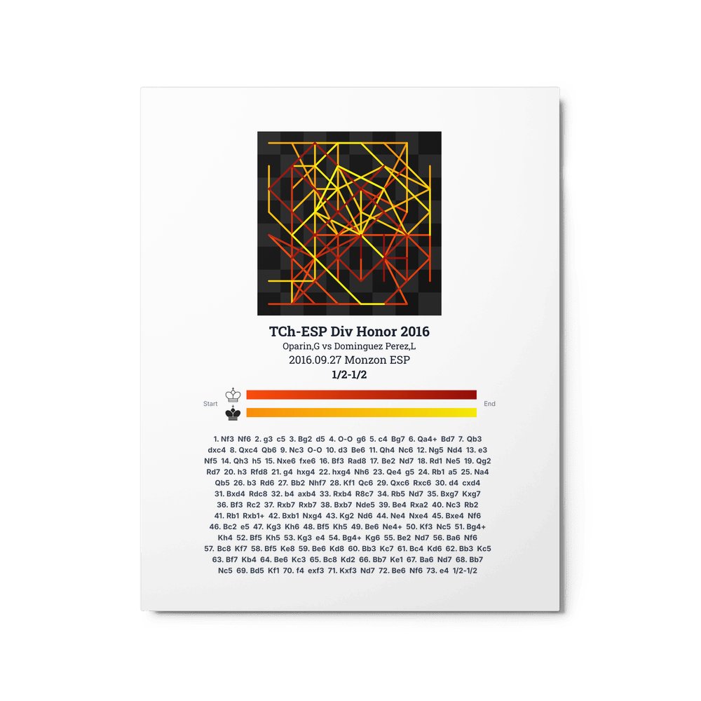 Museum-quality poster on thick, durable matte paper. A sharp, clean look for any chess visualisation.
