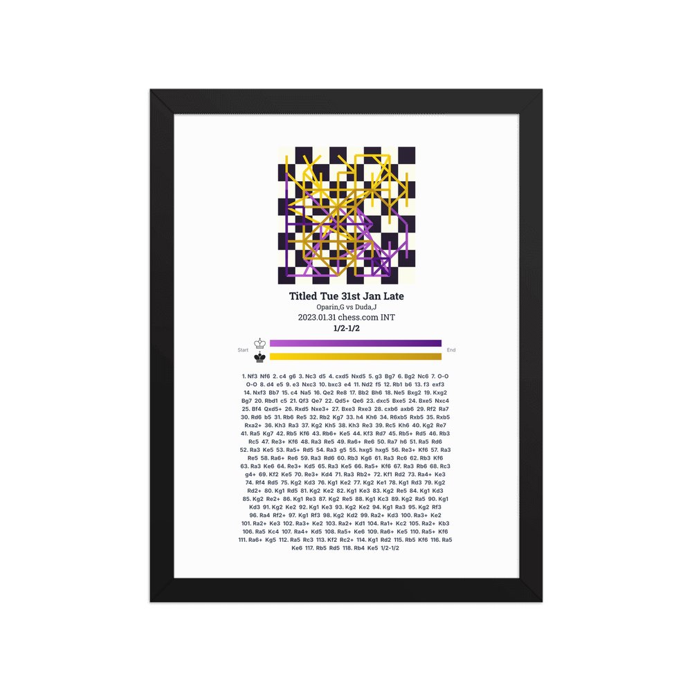 Museum-quality poster on thick, durable matte paper. A sharp, clean look for any chess visualisation.