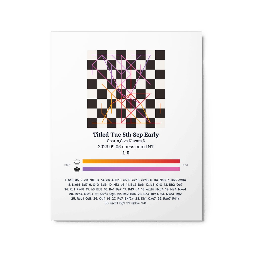 Museum-quality poster on thick, durable matte paper. A sharp, clean look for any chess visualisation.