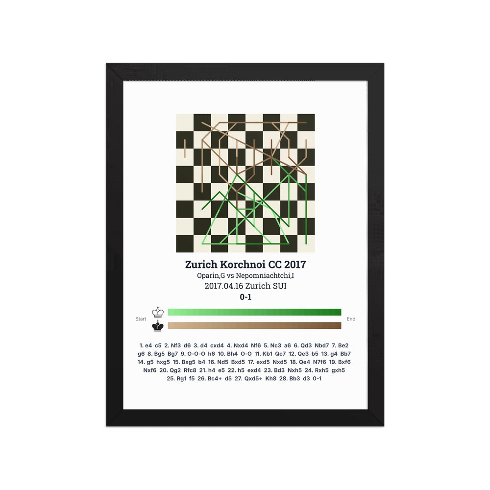 Museum-quality poster on thick, durable matte paper. A sharp, clean look for any chess visualisation.