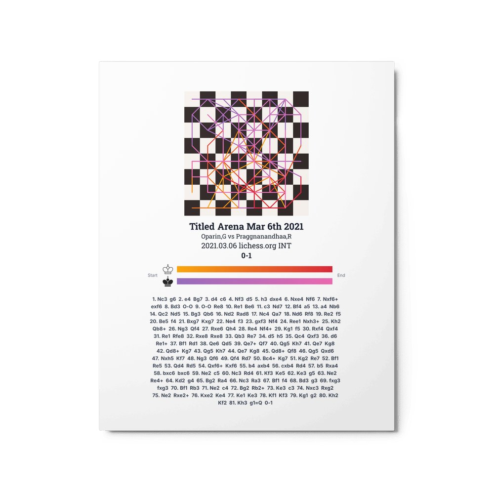 Museum-quality poster on thick, durable matte paper. A sharp, clean look for any chess visualisation.