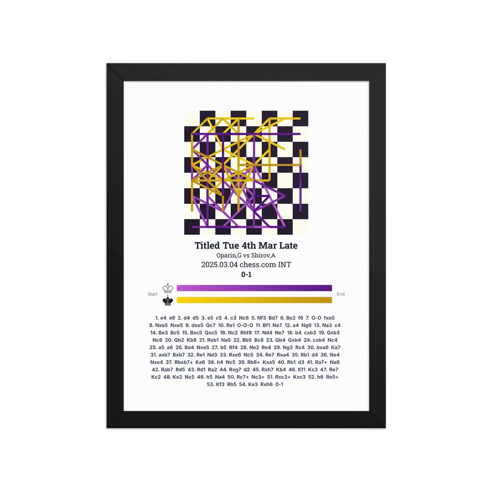 Museum-quality poster on thick, durable matte paper. A sharp, clean look for any chess visualisation.