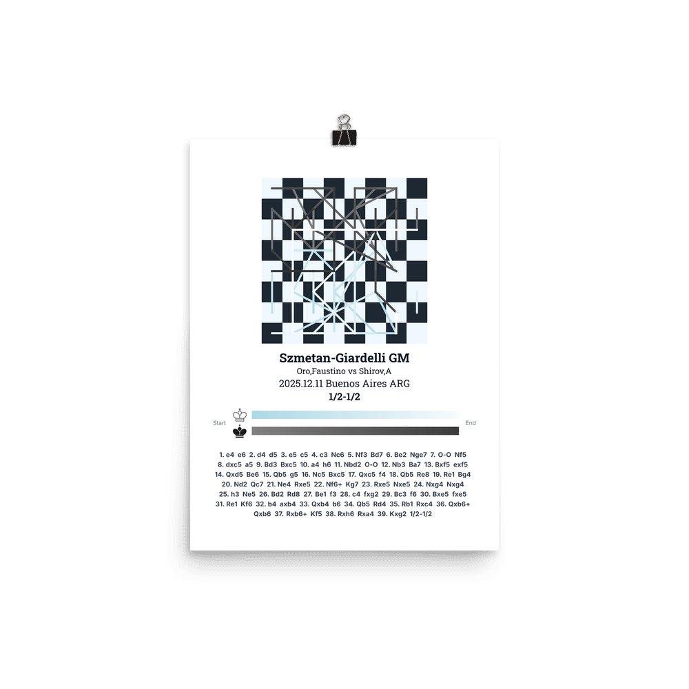 Museum-quality poster on thick, durable matte paper. A sharp, clean look for any chess visualisation.
