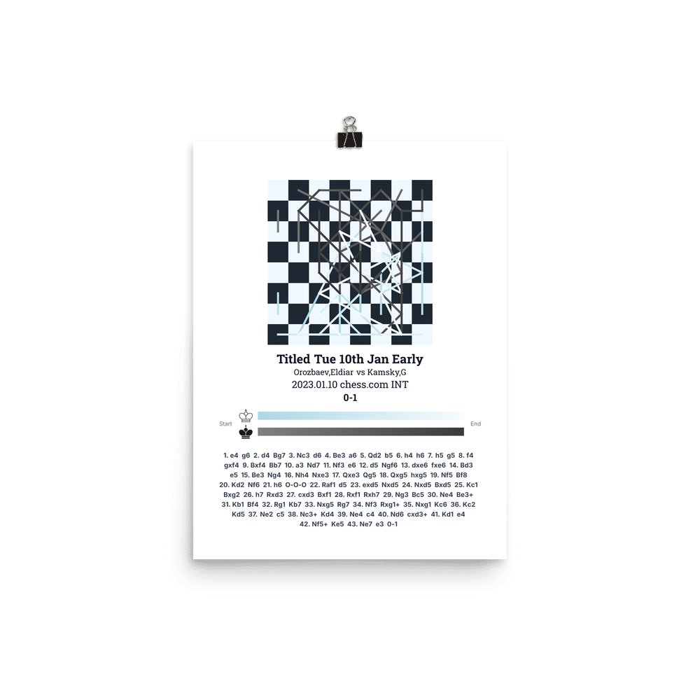 Museum-quality poster on thick, durable matte paper. A sharp, clean look for any chess visualisation.