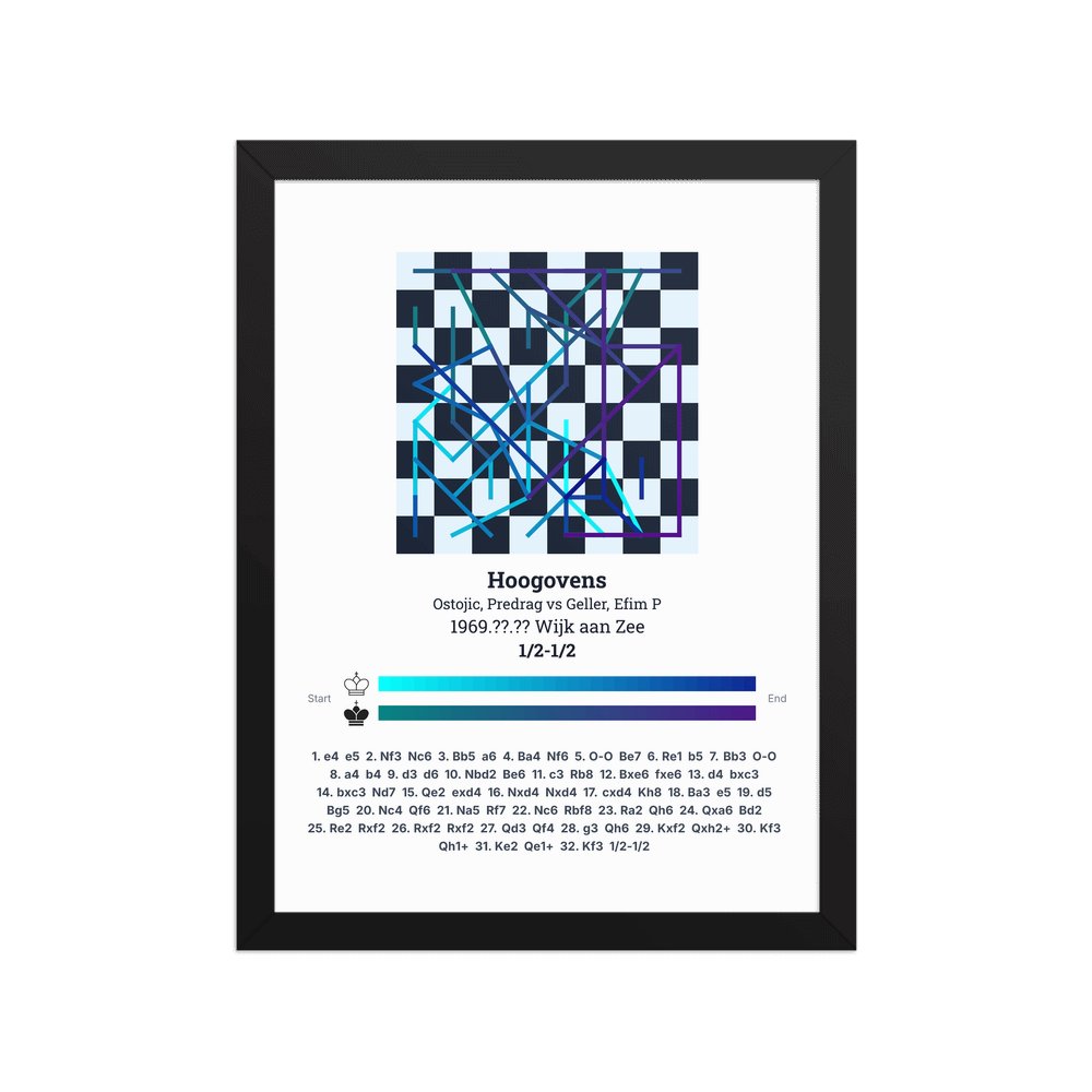 Museum-quality poster on thick, durable matte paper. A sharp, clean look for any chess visualisation.