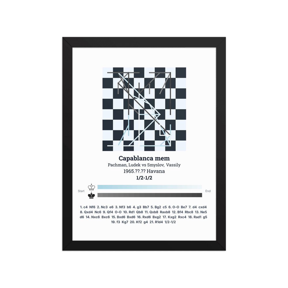 Museum-quality poster on thick, durable matte paper. A sharp, clean look for any chess visualisation.