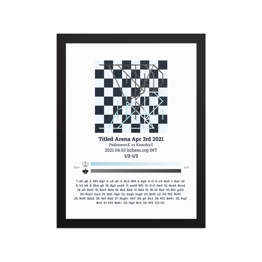Museum-quality poster on thick, durable matte paper. A sharp, clean look for any chess visualisation.