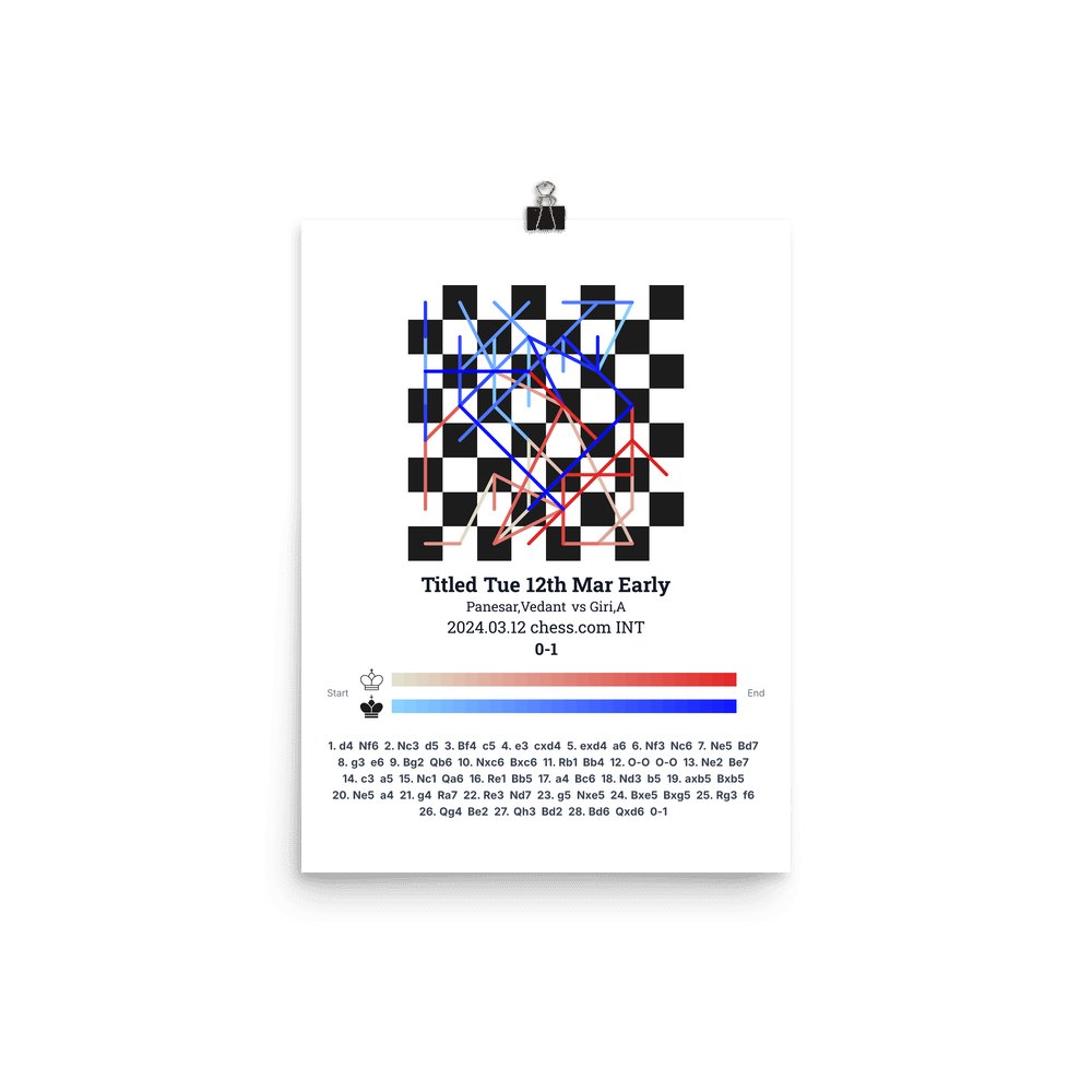 Museum-quality poster on thick, durable matte paper. A sharp, clean look for any chess visualisation.