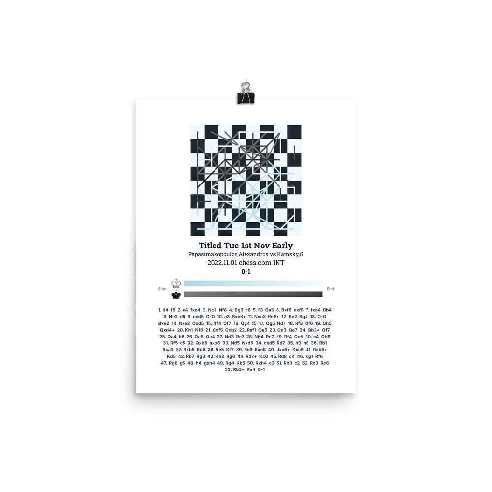 Museum-quality poster on thick, durable matte paper. A sharp, clean look for any chess visualisation.