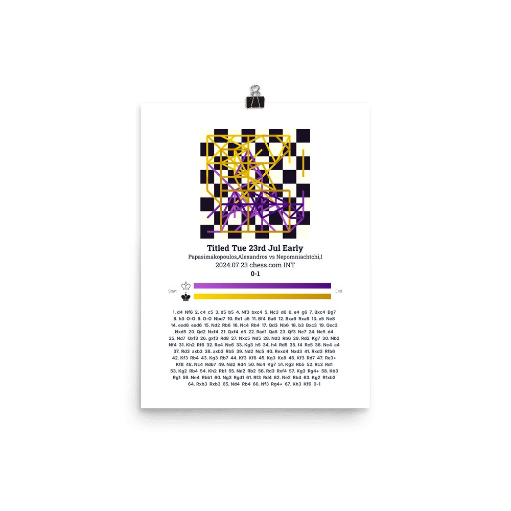 Museum-quality poster on thick, durable matte paper. A sharp, clean look for any chess visualisation.