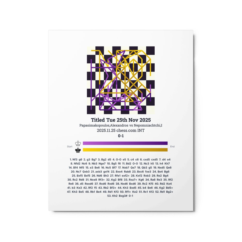 Museum-quality poster on thick, durable matte paper. A sharp, clean look for any chess visualisation.