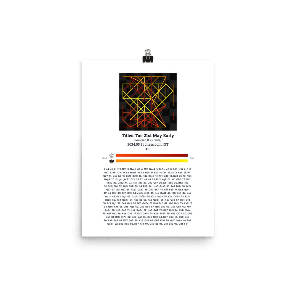 Museum-quality poster on thick, durable matte paper. A sharp, clean look for any chess visualisation.