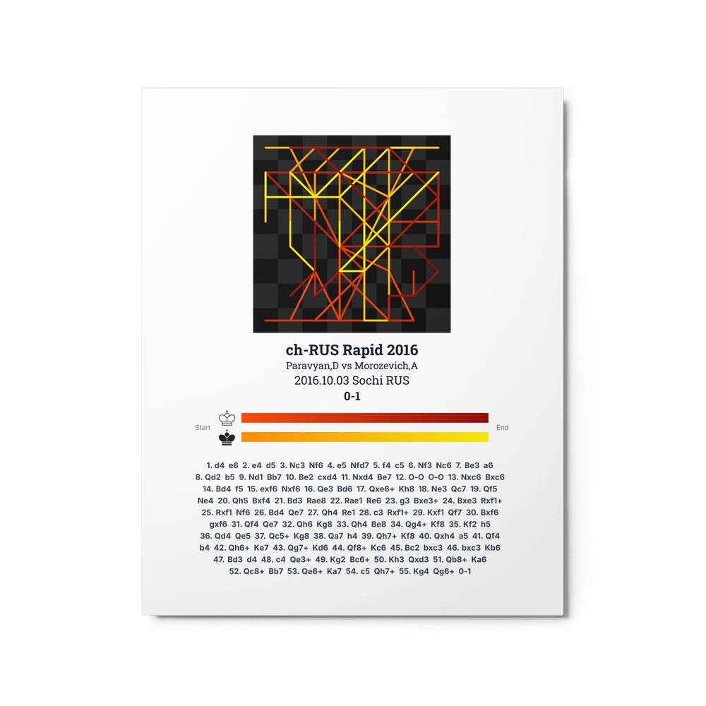 Museum-quality poster on thick, durable matte paper. A sharp, clean look for any chess visualisation.