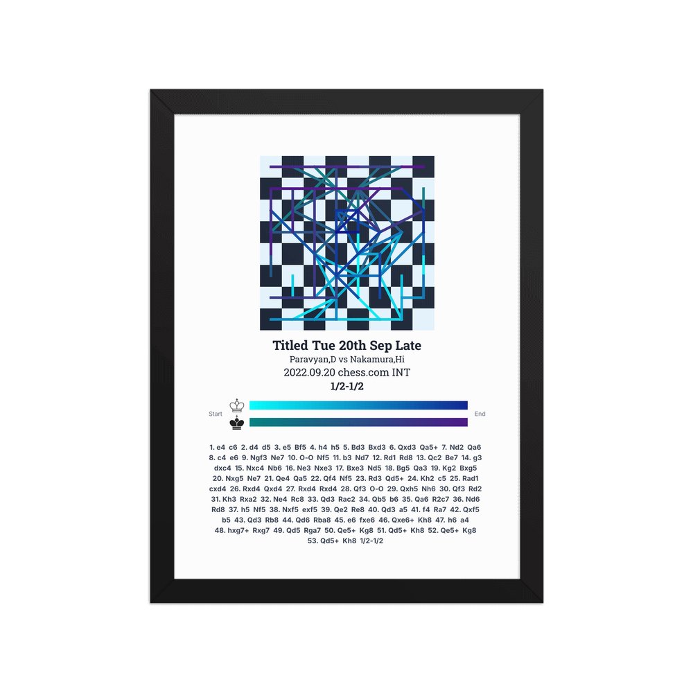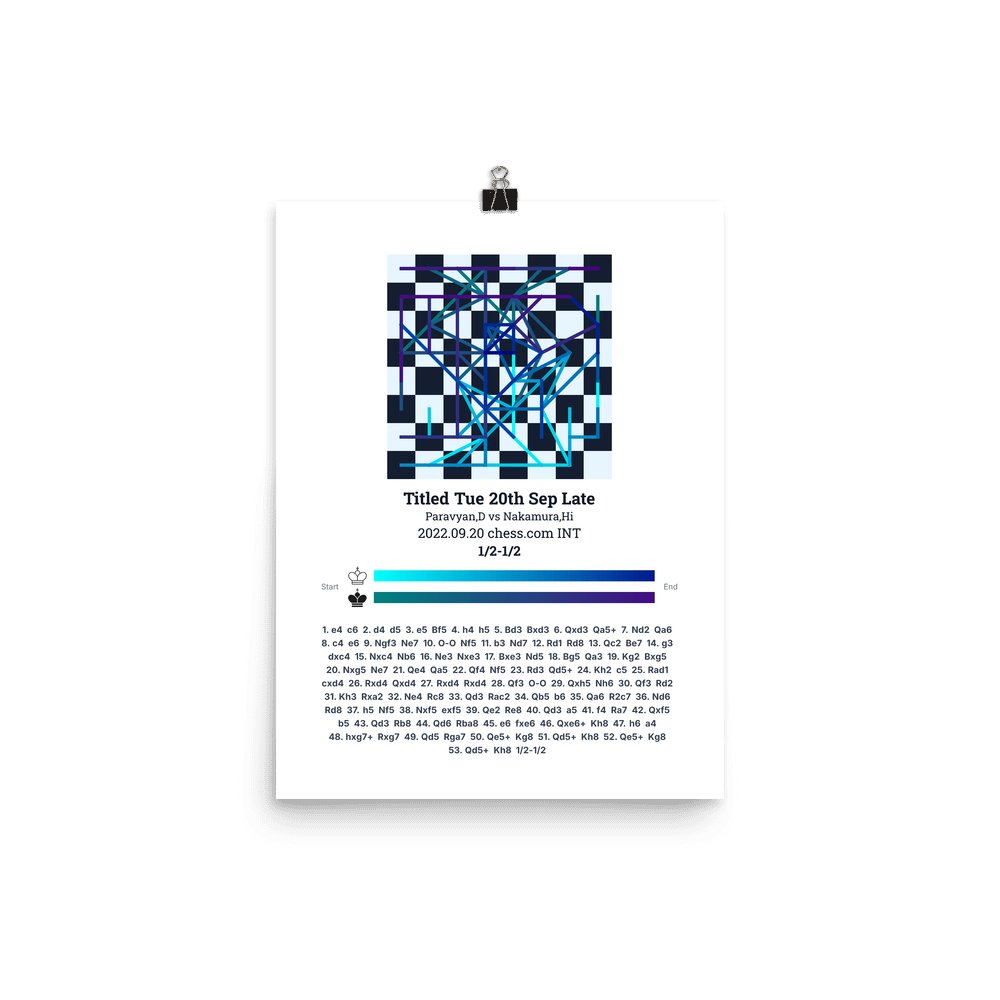 Museum-quality poster on thick, durable matte paper. A sharp, clean look for any chess visualisation.