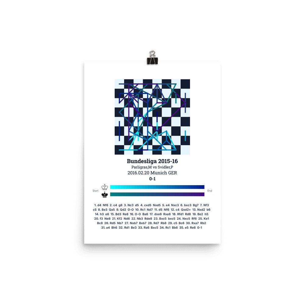 Museum-quality poster on thick, durable matte paper. A sharp, clean look for any chess visualisation.