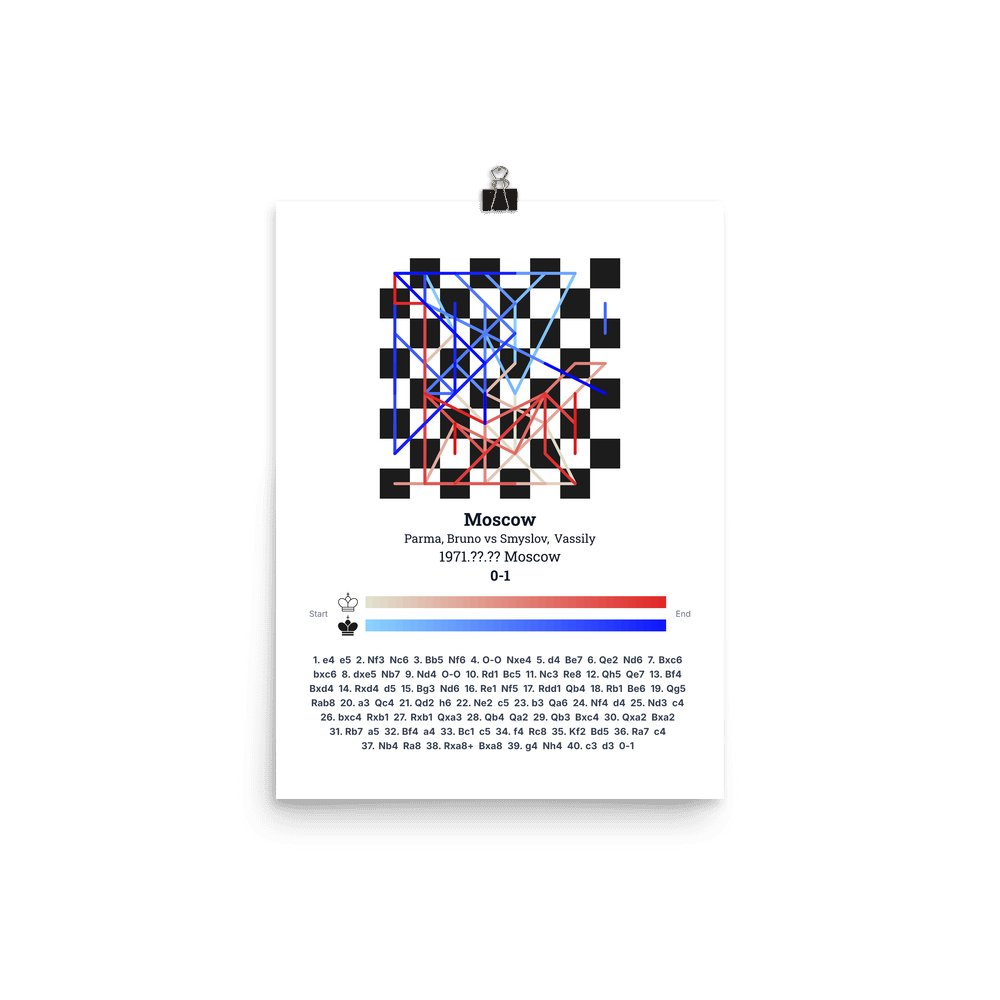 Museum-quality poster on thick, durable matte paper. A sharp, clean look for any chess visualisation.
