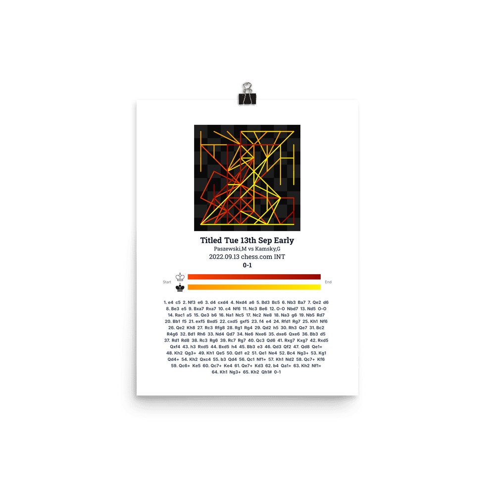 Museum-quality poster on thick, durable matte paper. A sharp, clean look for any chess visualisation.