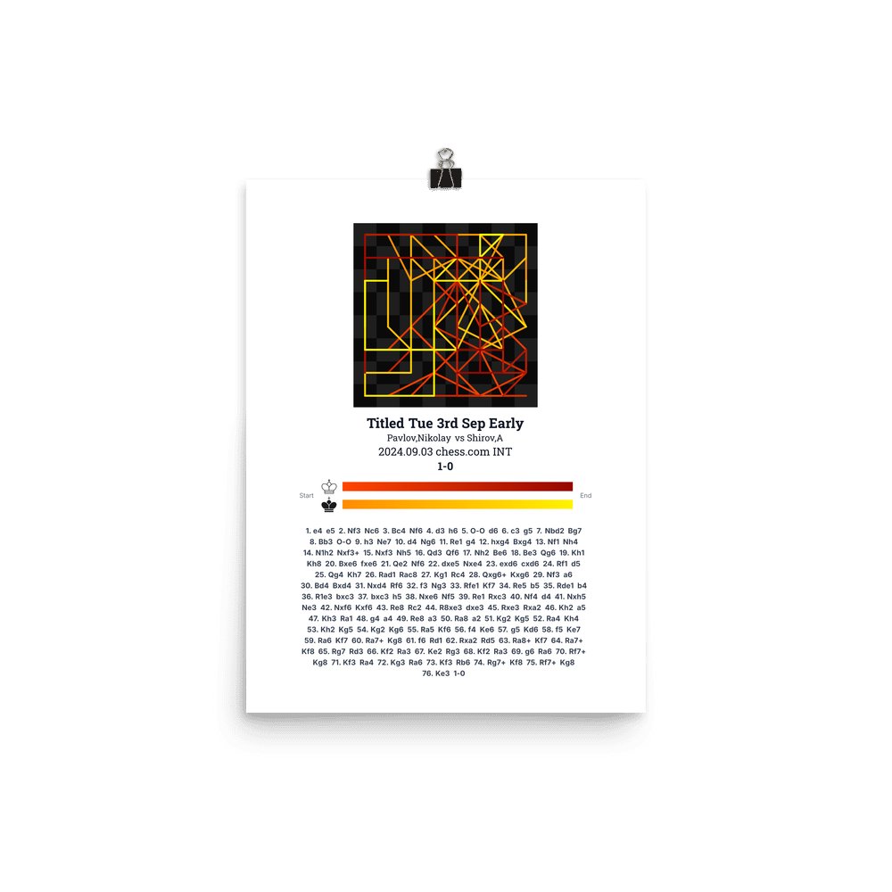 Museum-quality poster on thick, durable matte paper. A sharp, clean look for any chess visualisation.