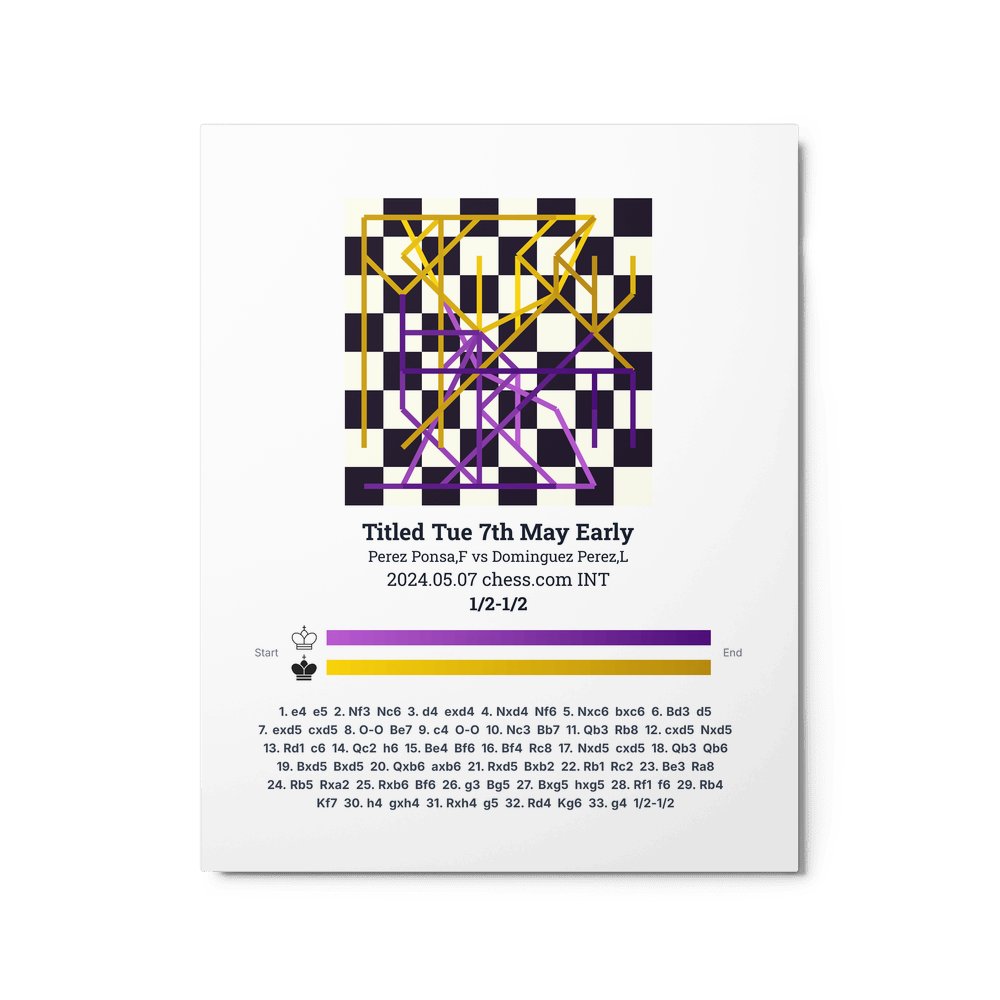 Museum-quality poster on thick, durable matte paper. A sharp, clean look for any chess visualisation.