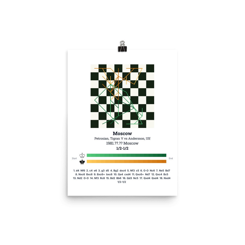 Museum-quality poster on thick, durable matte paper. A sharp, clean look for any chess visualisation.