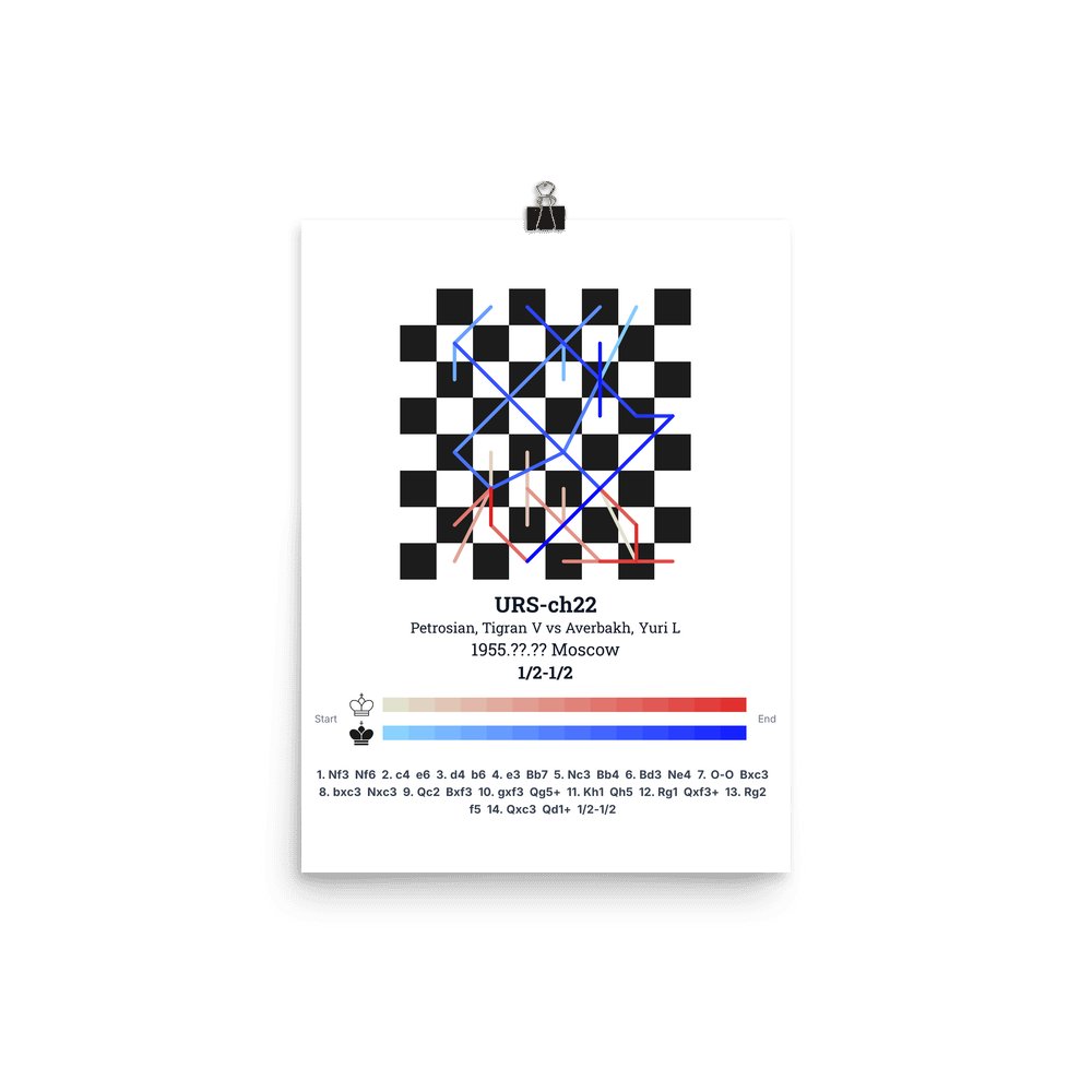 Museum-quality poster on thick, durable matte paper. A sharp, clean look for any chess visualisation.