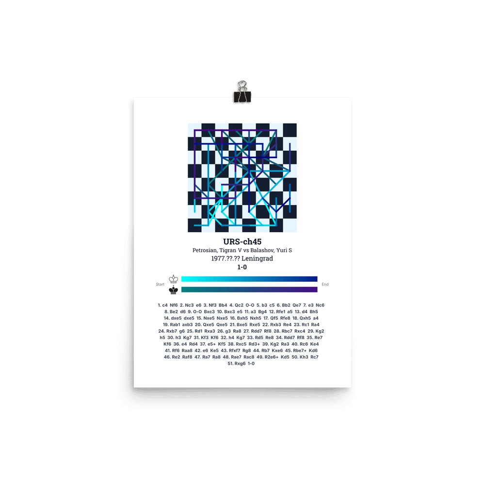 Museum-quality poster on thick, durable matte paper. A sharp, clean look for any chess visualisation.