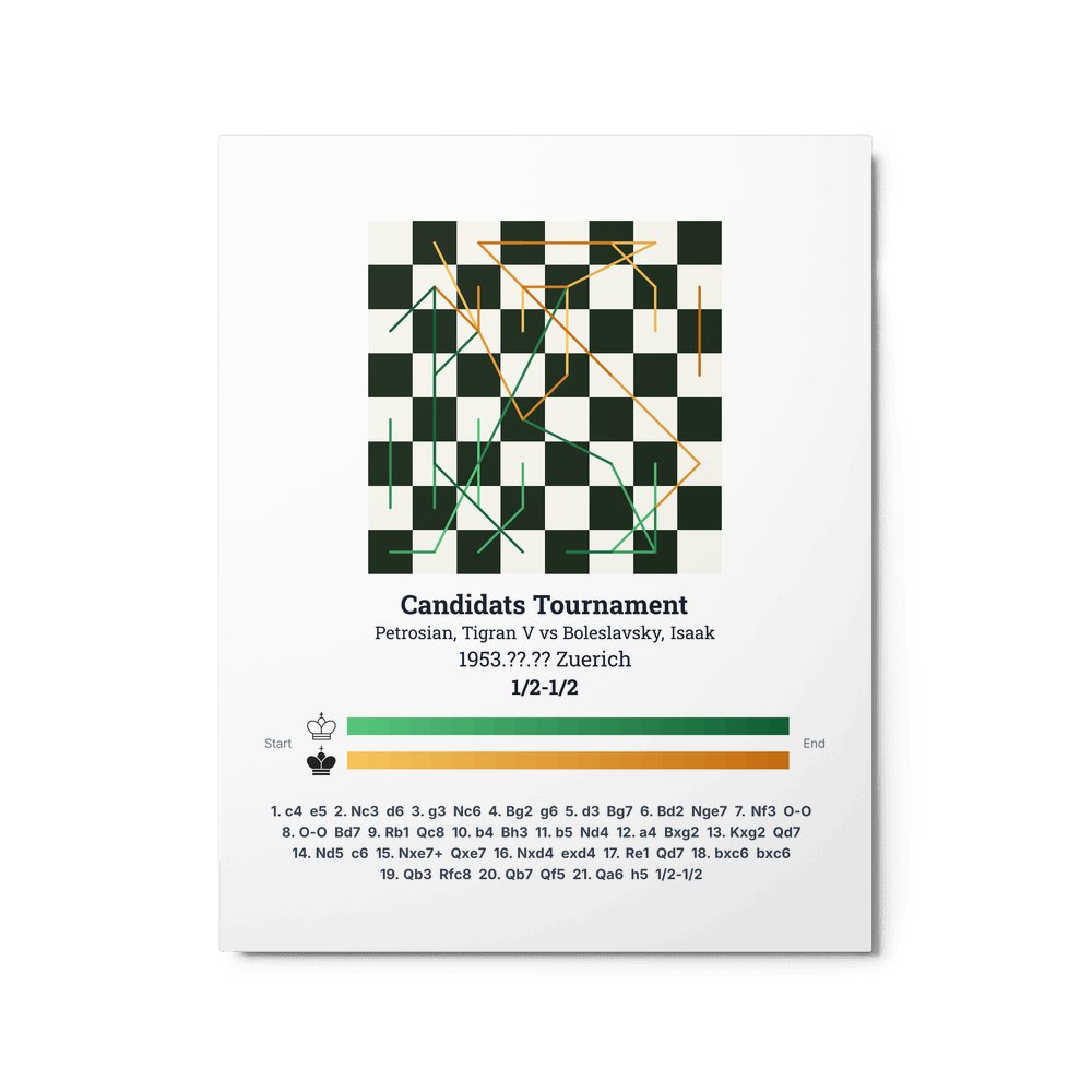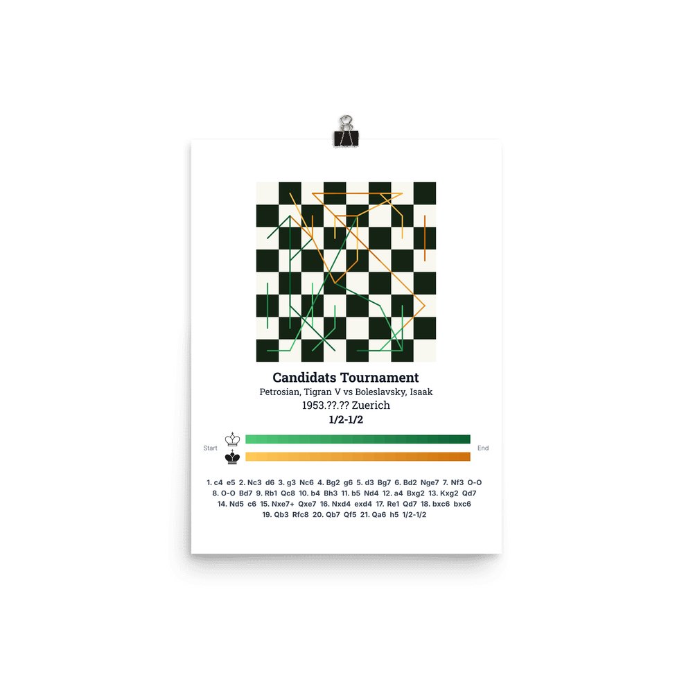 Museum-quality poster on thick, durable matte paper. A sharp, clean look for any chess visualisation.